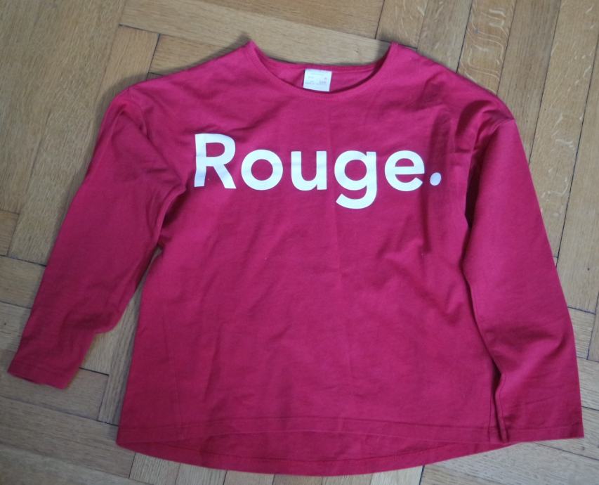 Lepo ohranjena bombažna majica, rdeča z belim napisom, trapeznega kroja - široka in kratka.