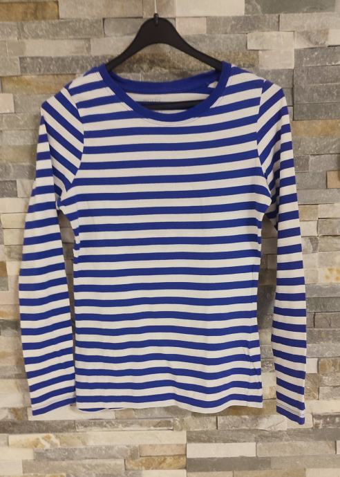 Ženska bombažna majica v modro in belih črtah, znamke Esmara. Velikost S, dolžina 60 cm, širina čez prsi 43. Material: 100% bombaža.