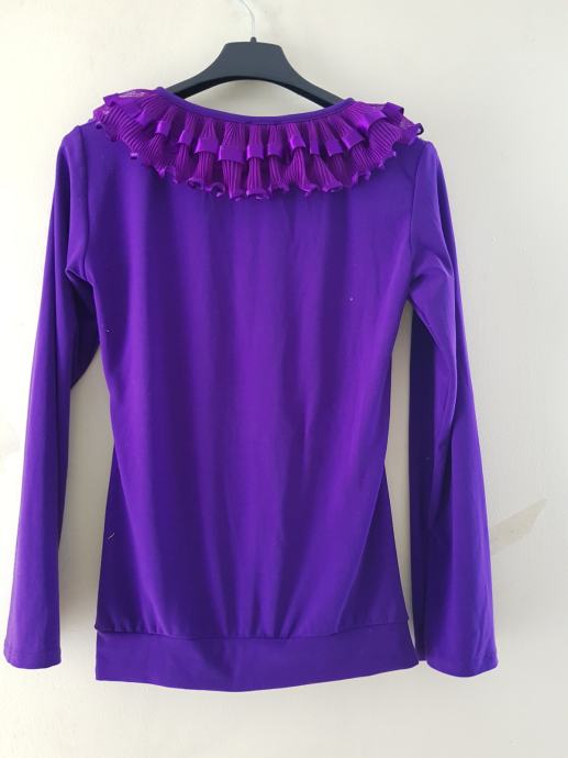 Nošena samo 2x, na rokavu ima nekaj muc,, barva volančkov je v isti barvi kot celotna majčka (ni taka kot na sliki), je raztegljiva
