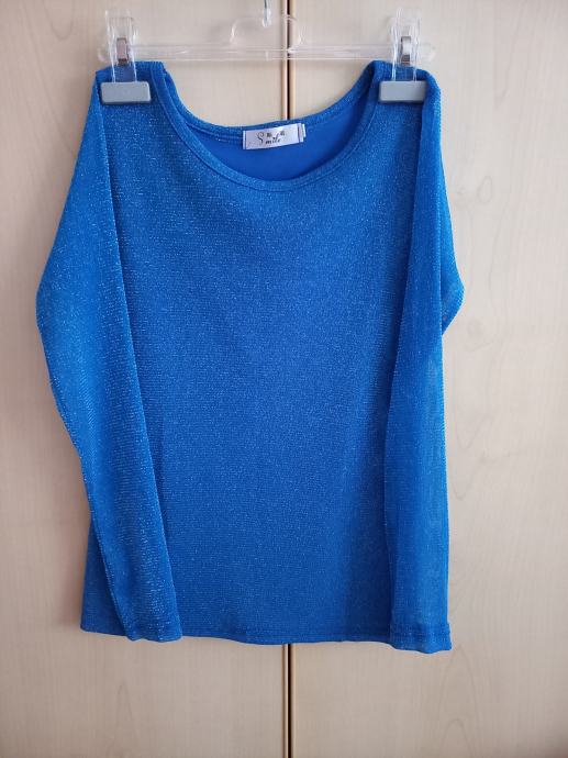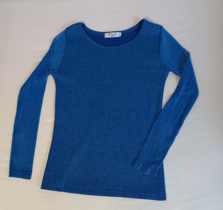 Prodam nenošeno kraljevsko modro svetlečo majico z dolgimi prosojnimi rokavi. Velikost M na etiketi, vendar je zelo majhna velikost (primerno za XS in S). Je oprijeta in raztegljiva. Prosojni so samo rokavi, ne cela majica.
