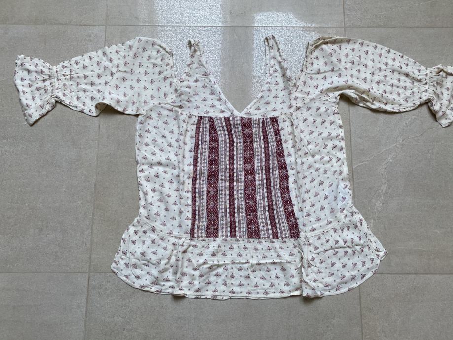 Prodam NOVO zelo lepo MAJICO Country Side CKH, v lepi bež barvi z bordo rdečo barvno kombinacijo, dolgimi rokavi in lepim nabranim zaključkom v bokih in na rokavih ter z zapeljivim izrezom v ramenih. Velikost: 40.