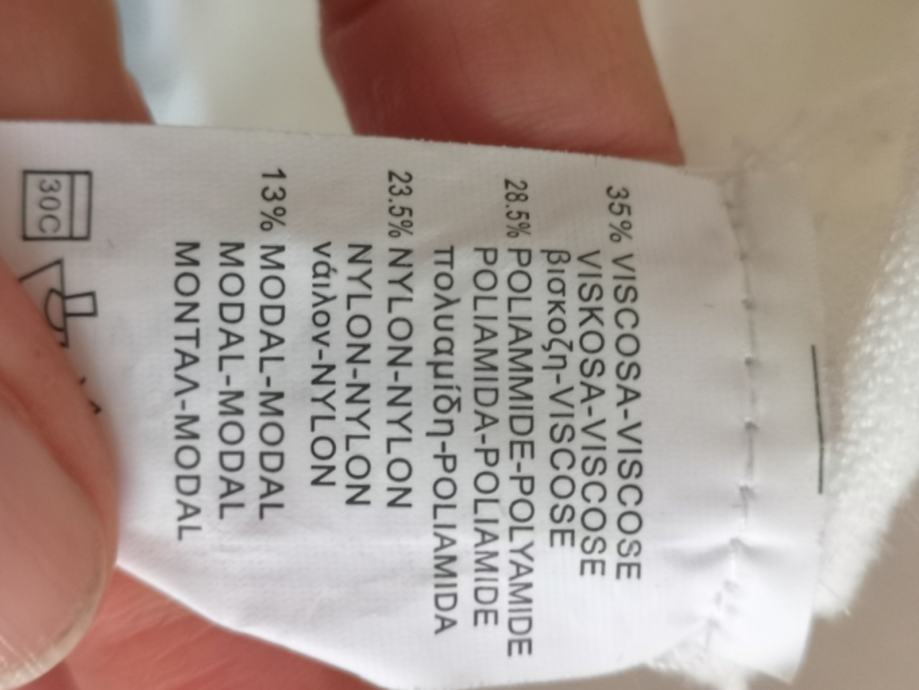 - 35% viskoza, 28% poliester, 23%najlon, 13% modal