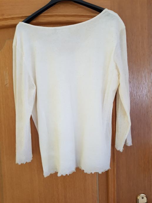 Belo smetanas e barve, zelo tenka, podložena, posuta z majhnimi zlatimi pikami.