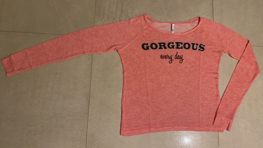 Prodam izredno lepo tanko pleteno MAJICO - tanjši PULOVERČEK, znamke ANN CHRISTINE, v prečudoviti koralni barvi, z črno srebrnim napisom GORGEOUS every day! Velikost: M - kot NOV.