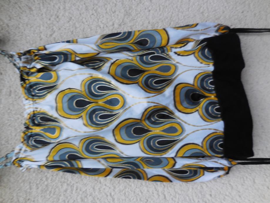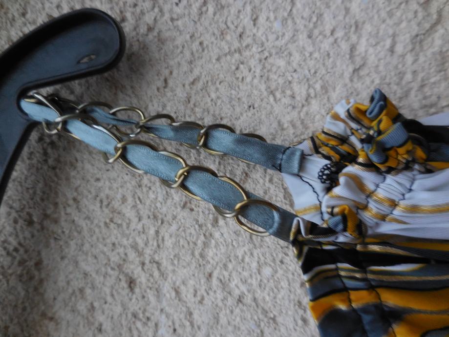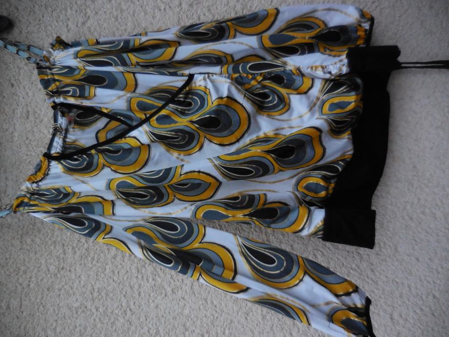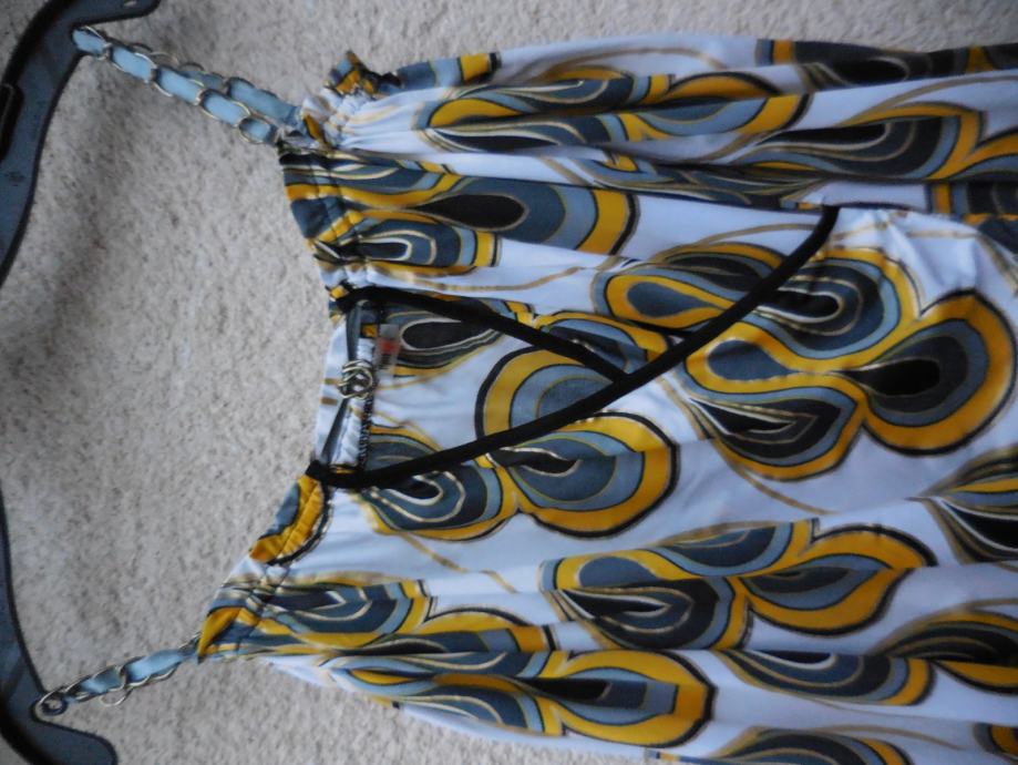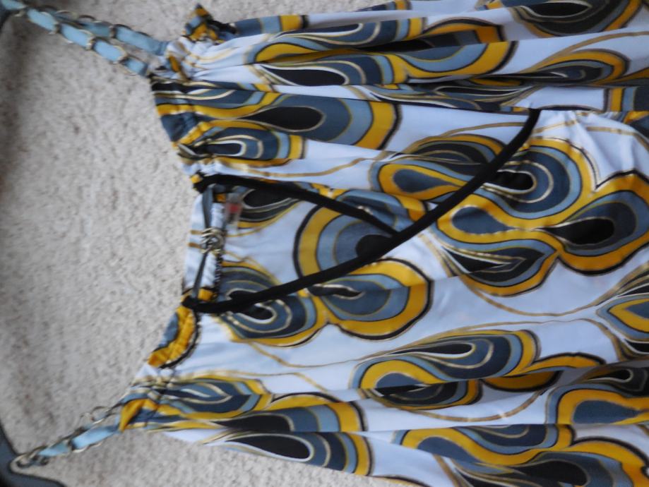 Nova party majčka. Sivo rumena s svetlečimi zlatimi obrobami. Ima dolge rokave in dve verižici. Majčka je raztegljiva.