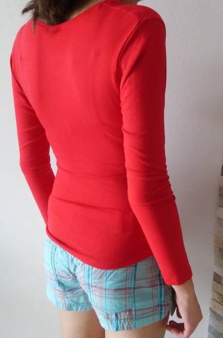 Ženska majica v vijola ali rdeči barvi znamke Viva Lara. Sprednji del je malo asimetričen. Velikost S, dolžina 48 cm, širina čez prsi 38 cm, širina v pasu 31 cm, širina spodaj 37 cm, dolžina rokava 54 cm. 93 viskoze, Vsebuje elastan