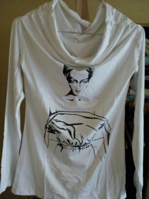 Majica je čisto nova,nikoli nošena.Št.38. 97 %bombaž in 3% elastan.Majica ima ročni potisk. Plačilo na moj ttr,flik pay :)Menjava ni možna:)