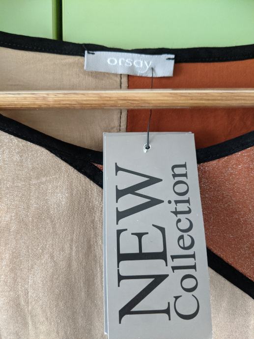 Nova še z etiketo, sicer je številka 38 ampak je širši kroj, obseg okrog prsi oziroma pod pazduho je 104cm