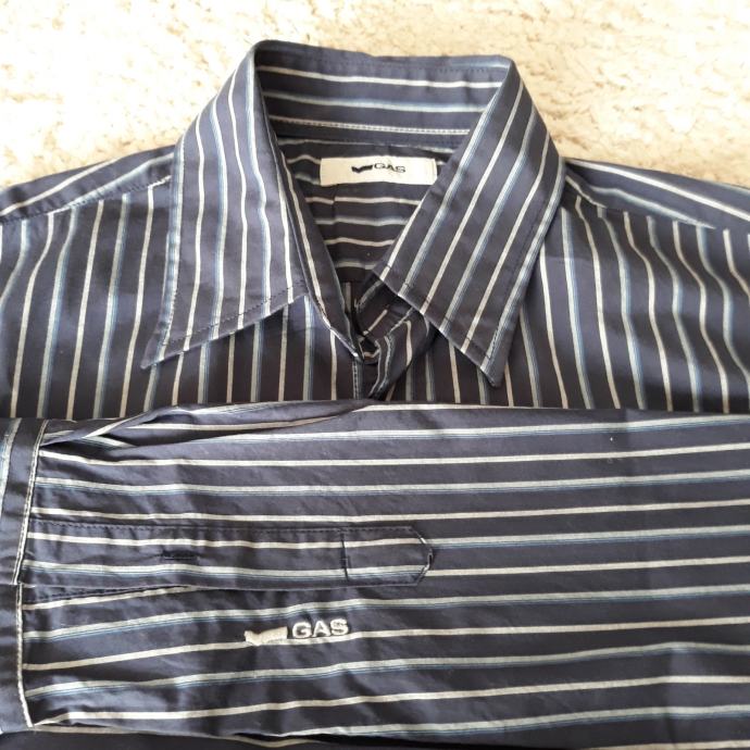 Moška srajca, GAS, številka M, slim fit, temno modra z sivimi in svetlo modrimi črtami. Kupljeno v Italiji, Nošena eno leto, kot nova. Stroške ptt krije kupec