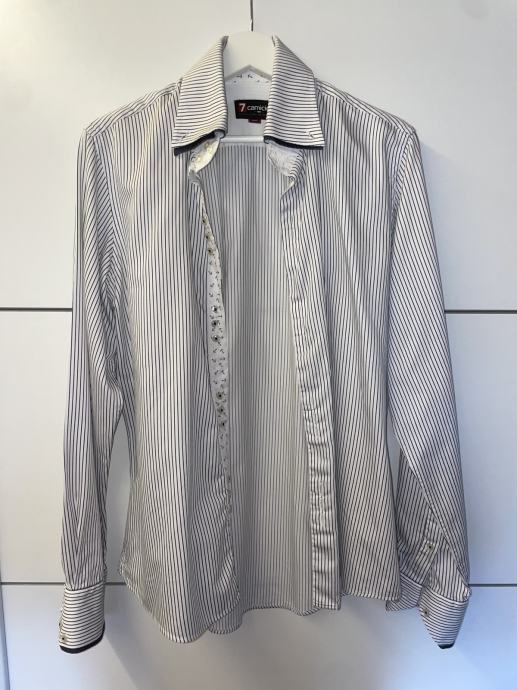 Prodam moško srajco znamke 7 camicie v beli barvi z modrimi črtami. Velikost je M.