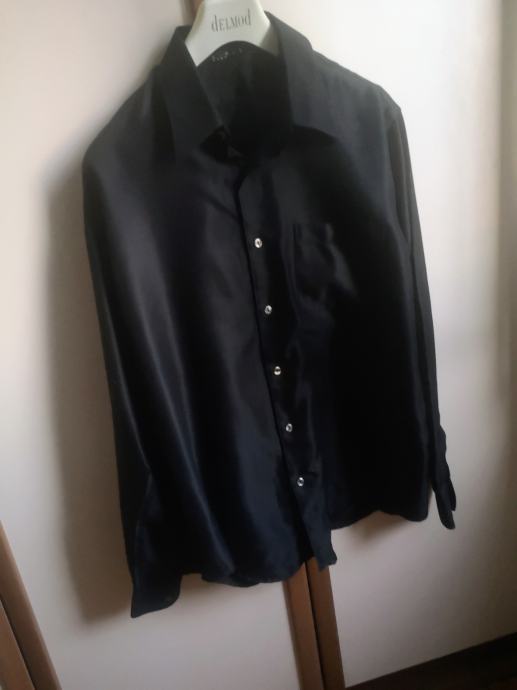 Elegantna moška srajca, L, 41-42, črne barve z zamolklim lesketem,