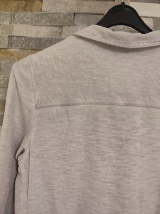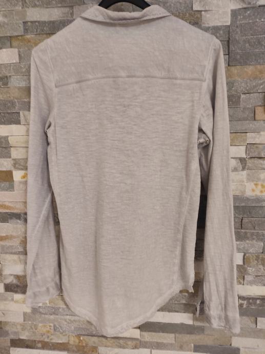 Ženska srajca ali bluza v sivi barvi z dolgimi rokavi znamke Cecil. Prednja dela srajce sta iz 100% bombaža, rokavi in zadnji del pa je še mešanica elastana in bombaža. Srajca se zapira po dolžini na gumbe. Velikost M, dolžina 69 cm, širina čez prsi 48, dolžina rokava 64 cm. Material bombaž in elastan. Cena je 5 € + ptt.