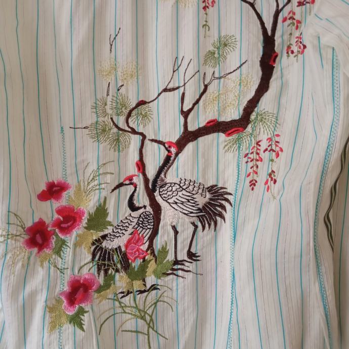 Zelo lepo ohranjena, bombažna, ni raztegljiva z vezenino spredaj in zadaj ter zlatimi nitkami po celotni dolžini, od ene pazduhe do druge meir 50cm, dolžina je 60cm, ne menjam, ptt ni vključea v ceno