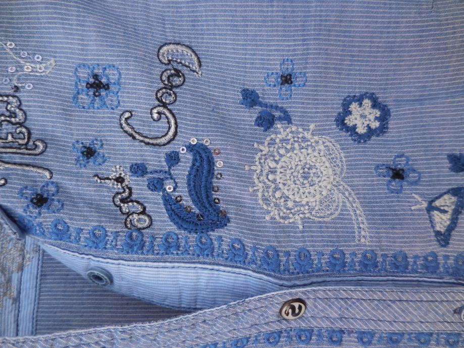 Nova srajca s čudovito vezenino na sprednji strani. Srajca ni raztegljiva. Od ene pazduhe do druge meri 45cm, dolžina je 70cm. Nabavna cena je bila 99,95€ - prodam po polovični ceni.