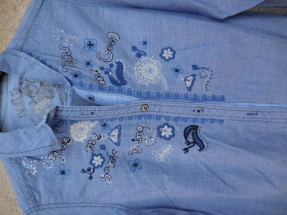 Nova srajca s čudovito vezenino na sprednji strani. Srajca ni raztegljiva. Od ene pazduhe do druge meri 45cm, dolžina je 70cm. Nabavna cena je bila 99,95€ - prodam po polovični ceni.