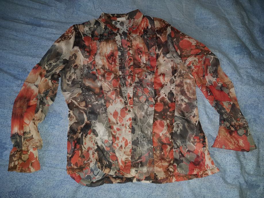 Prodam elegantno krojeno prosojno srajico z rožastim vzorcem. V notranjosti je še všit rezervni gumb.