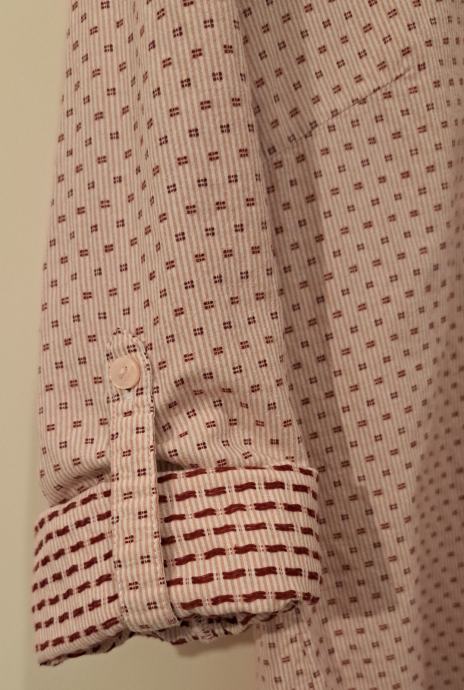 Malo nošena in zelo lepo ohranjena srajca. Velikost je XS, vendar je precej večja številka in bolj primerna za velikost S. Bombažna, mehka, udobna. Rokavi se lahko zavihajo in zapnejo. Hrbtna dolžina: 65 cm.