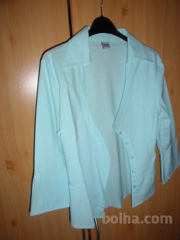 Prodam lepo srajco št. L, turkizne barve, naredi zelo lep dekolte, tri-četrt rokav, atraktivno zapenjanje, elastan. Nošena samo za 1 priložnost - praktično nova.