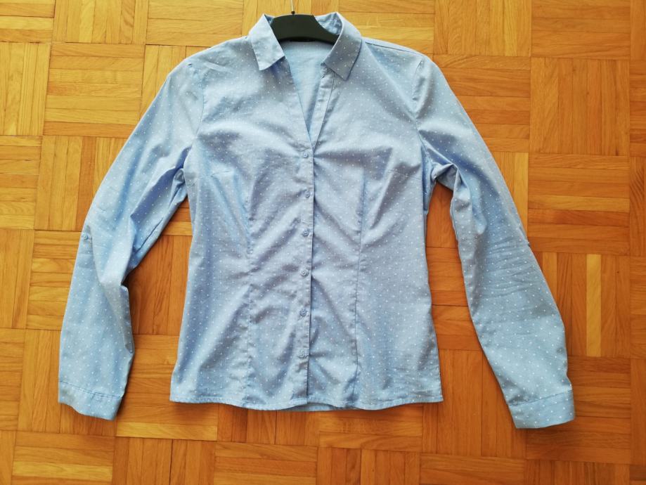 Prodam 2x nošeno svetlo modro žensko srajco z belimi pikicami. Srajca je čista, nesprana in nepoškodovana. Velikost 38.