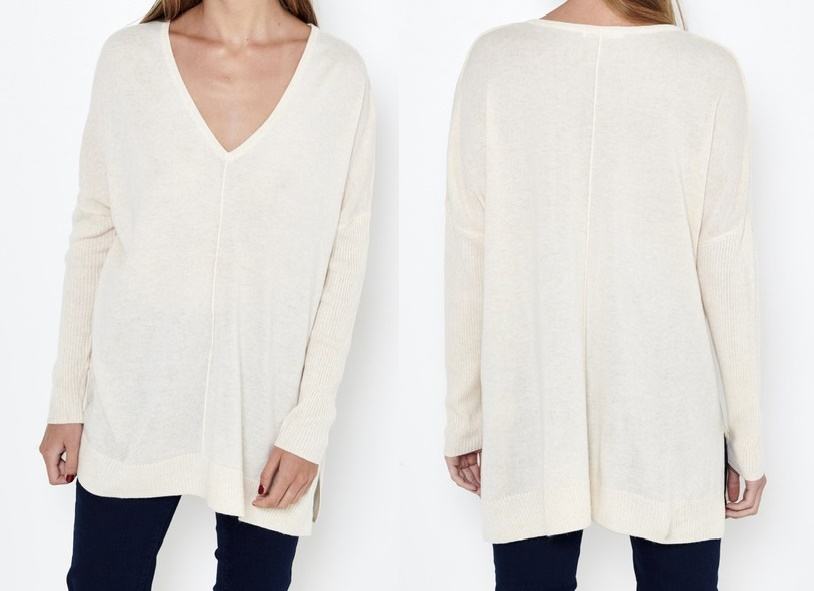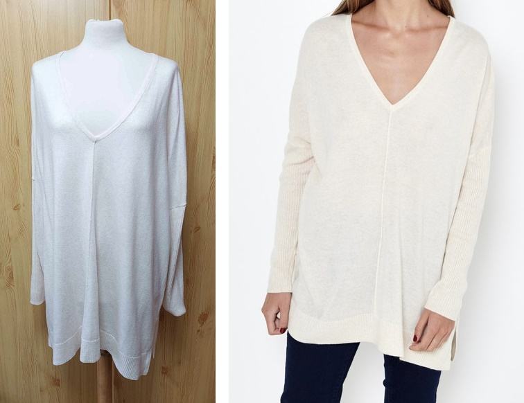 CAMAIEU BREZHIBEN - ENKRAT RABLJEN TER OPRAN - PULOVER / TUNIKA, BEŽ KREMNE BARVE, OHLAPEN KROJ / OVERSIZE / OVERSIZED, ZELO PRIJETEN NA OTIP, 56% AKRIL + 37% POLIAMID + 6% VOLNA + 1% ELASTAN.