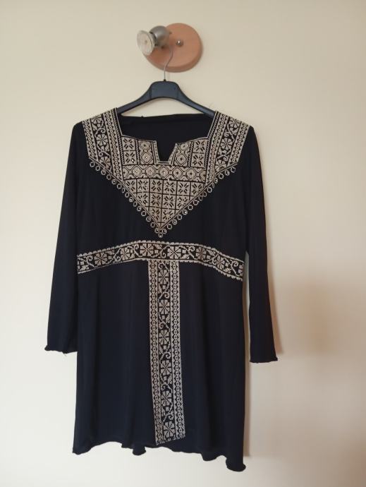 Nošena samo 1x, svečana, vezena z zlatimi nitkami, zgornji vezen del je posut s srebrnimi perlicami, je raztegljiva, od ene pazduhe do druge meri 50 do cca 54cm, dolžina je 77cm, ne menjam, ptt ni vključena v ceno