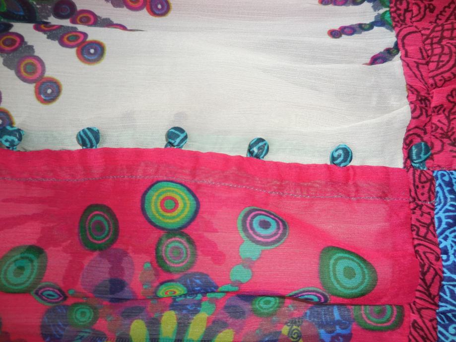 Nikoli nošena, samo kupljena Desigualova dolga tunika ali bluza. Na sprednji strani ima gumbe, spodaj pa tenko elastiko. Je delno prosojna in ni raztegljiva.