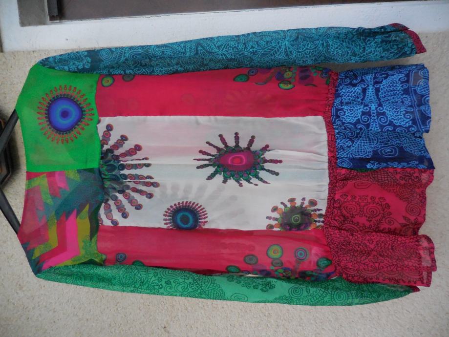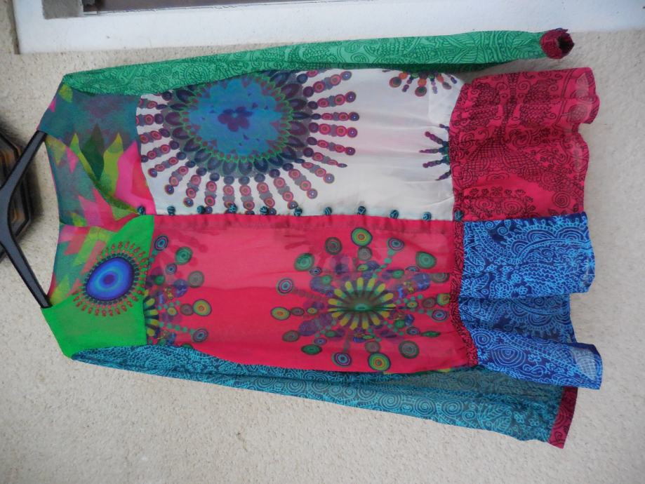 Nikoli nošena, samo kupljena Desigualova dolga tunika ali bluza. Na sprednji strani ima gumbe, spodaj pa tenko elastiko. Je delno prosojna in ni raztegljiva.