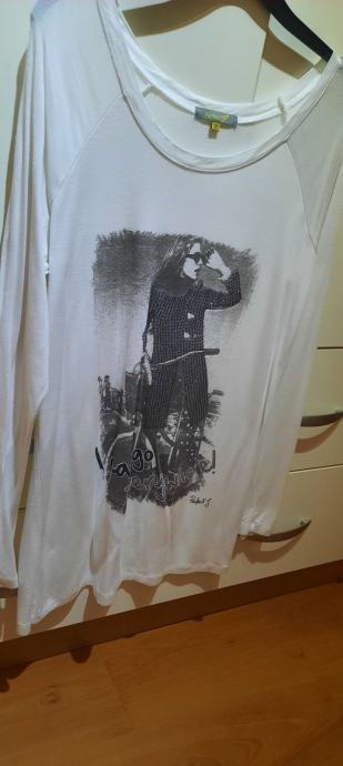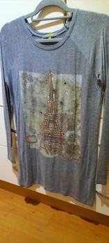 Prodam žensko majico-tuniko dolgi rokav sivo s sliko Eiffelovega stolpa in belo s sliko št. M obe skupaj za 10 EUR (1x nošeno). Prevzem možen v Celju, Dobrni, Velenju, Mariboru ali po pošti. 030/306-962