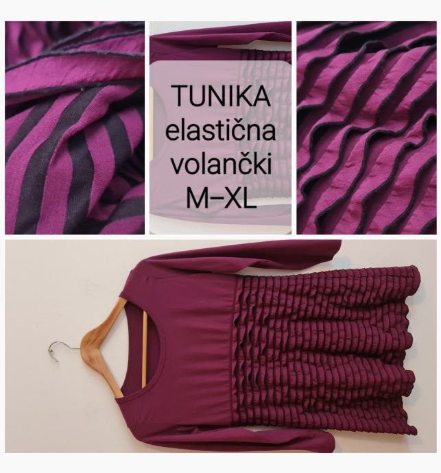 Vijolična tunika z volančki. Elastična. Primerna za M, L in XL.