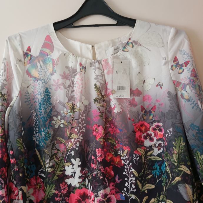 nova z etiketo, ni raztegljiva, od ene pazduhe do druge meri 53cm, dolžina je 63cm, ne menjam, ptt ni vključena v ceno