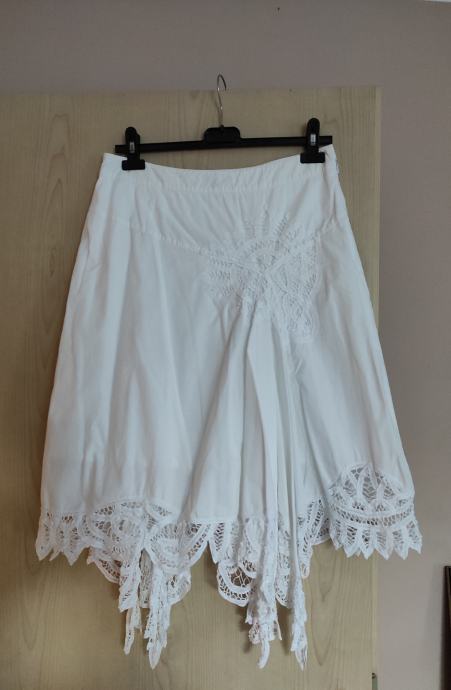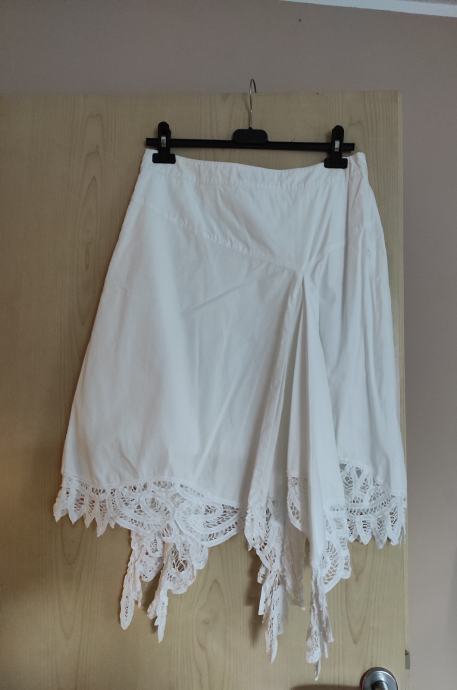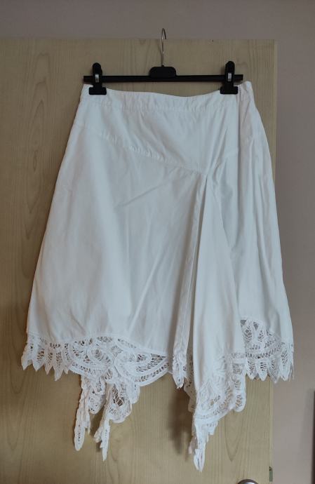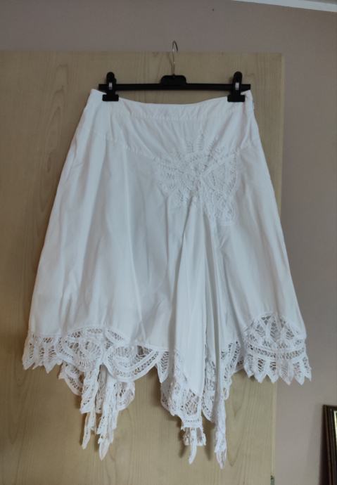 PRODAM NOVO, NIČ NOŠENO ASIMETRIČNO KRILO Z VEZENINO, ČIPKO, ZNAMKE BANDOLERA.