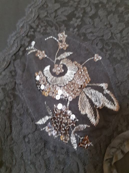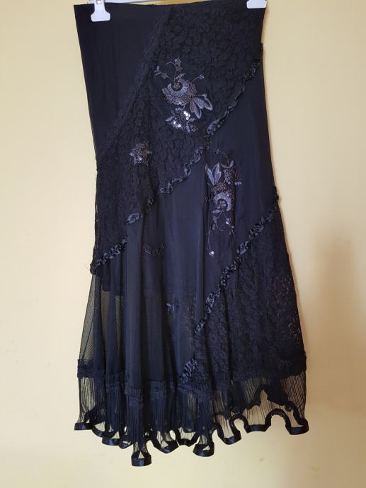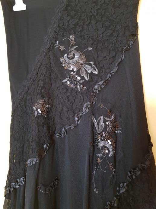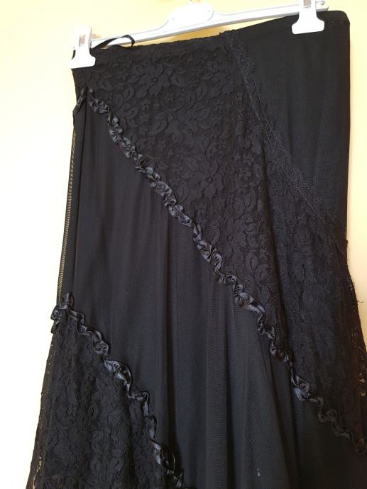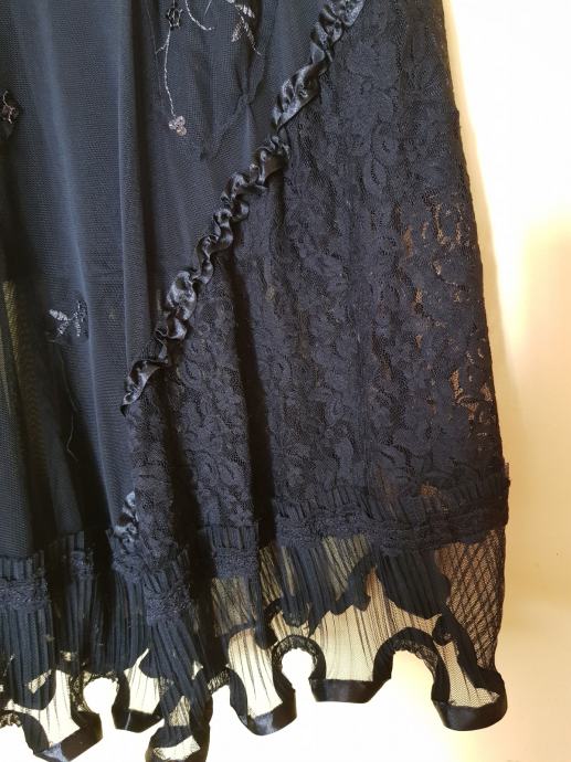Samo1x oblečeno črno podloženo krilo z dodatki čipke in cvetlične vezenine.