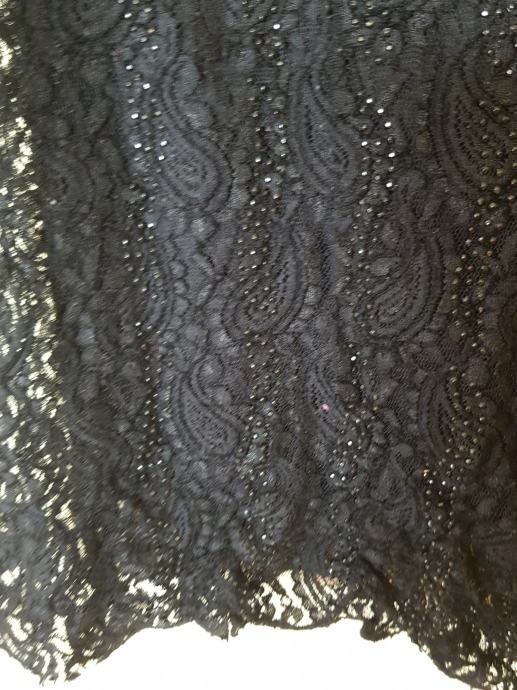 Lepo ohranjeno, podloženo, raztegljivo, na sprednji strani ima črne svetleče perlice