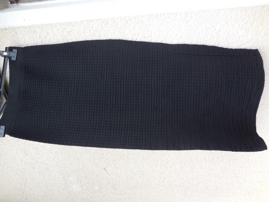 Novo, nikoli nošeno dolgo oprijeto rahlo vzorčasto črno krilo. Krilo je iz malo debelejšega raztegljivega materilaa in se zelo lepo oblikuje po postavi. V pasu ima 4cm dolgo elastiko, dolžina krila je malo nad gležji .