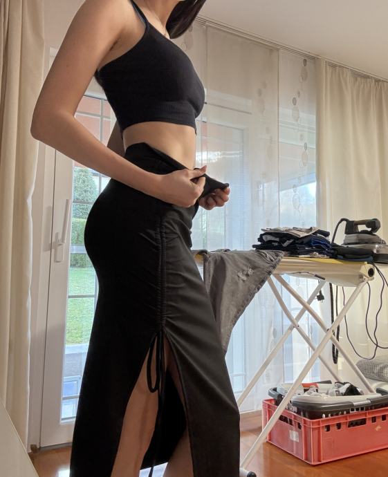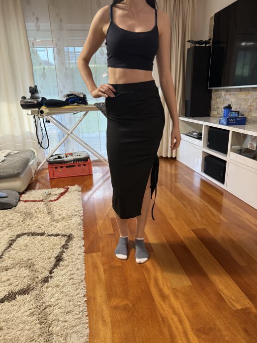 Prodajam čudovito črno midi krilo, ki poudari postavo in je idealno za elegantne večerne izhode, službo ali vsak dan.