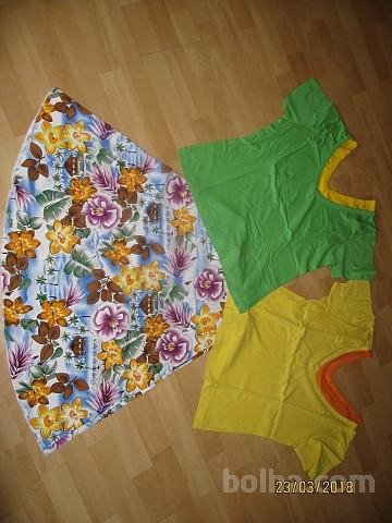 Prodam odlično ohranjen komplet modnega rožastega krila in dveh ujemajočih majic v velikosti 38/40. Krilo ima zadaj zadrgo, v pasu meri 38 cm, dolžina je 64 cm - bombaž. Letos modna barvna kombinacija za simbolično ceno 14,00 eur z navadno poštnino ob predhodnem nakazilu na trr.