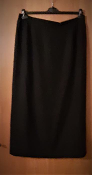 Novo krilo, dolžine 97 cm, zadaj razporek, črno, ob straneh v pasu raztegljivo, št. 48. Cena 15 €+ptt.