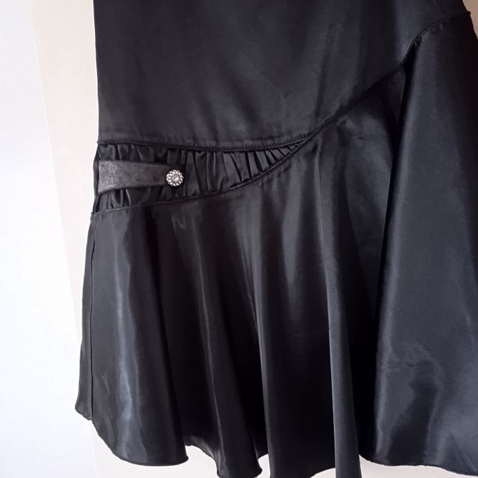 Višji cenovni razred, zelo lepo ohranjeno, podoženo, ni raztegljivo, satenasto, 50% viskoza, v pasu meri 38cm, dolžina je 80cm, ne menjam, ptt ni vključena v ceno