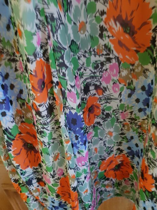 Zelo lepo ohranjeno, cvetlično, podloženo, ni raztegljivo, zapenja se ob strani z zadrgo