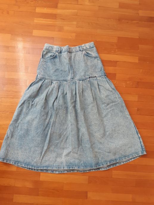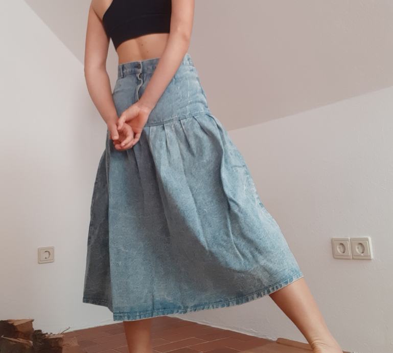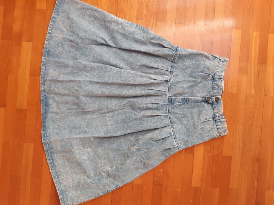 Prodam denim oz. jeans krilo na sliki. Kupljeno je v 2nd hand trgovini. Ima en mini madež, viden na sliki.