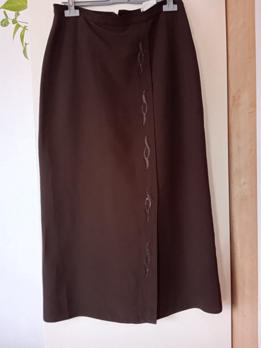 Nikoli nošeno, zelo kvalitetno, podloženo, ni raztegljivo. V pasu meri 41cm, boki so 56cm, dolžina je 92cm. Orig. oznaka vel. je 44, realna vel. je 40/42, ne menjam, ptt ni vključena v ceno