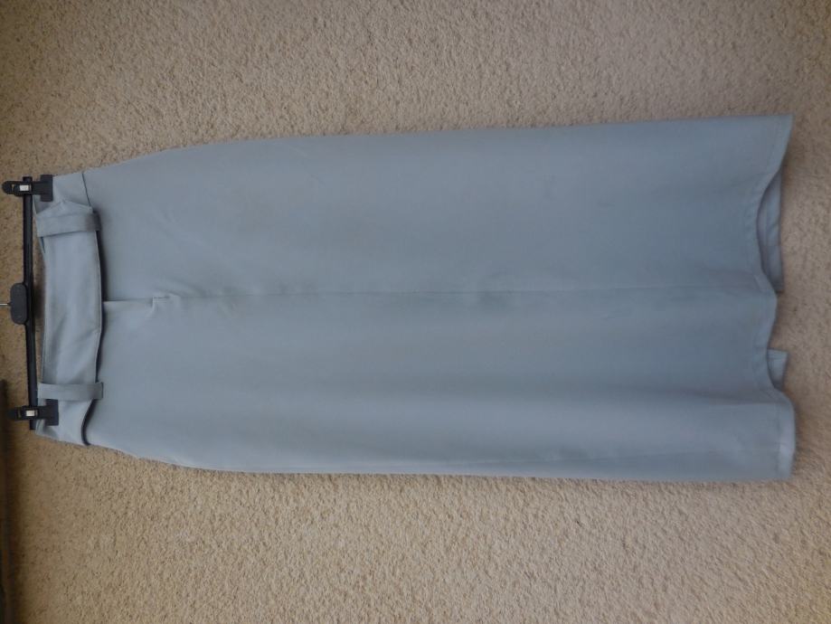 Nikoli nošeno dolgo lahko sivo krilo, Ni podloženo in je delno raztegljivo, zadaj ima 40cm. dolg razporek..
