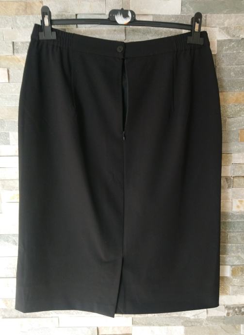 2. Klasično črno krilo z gubo na sprednji strani in razporkom na zadnji strani, znamke Visia. Zapira se na zadrgo na zadnji strani, v pasu na straneh ima elastiko. Kvalitetno blago. Dolžina krila je 64 cm, širina pasu je 41 cm, širina čez boke 53 cm.