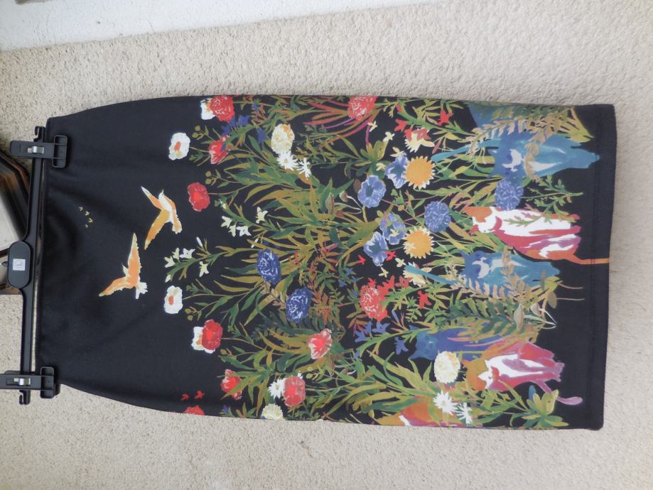 Lepo ohranjeno črno krilo s cvetličnim vzorcem, ni podloženo in je nekoliko raztegljivo, v pasu ima elastiko.