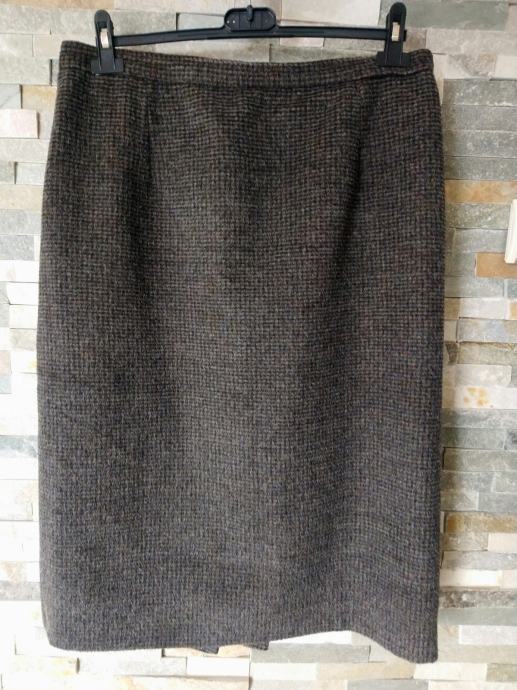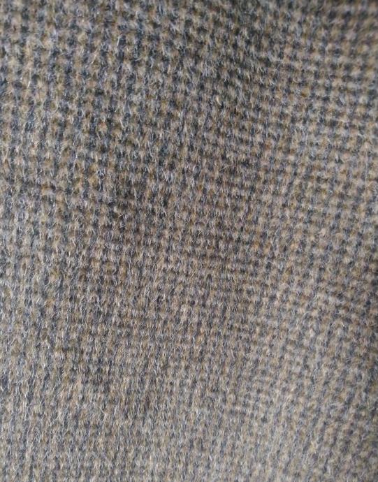 4.Daljše klasično podloženo zimsko krilo v pepita vzorcu, črne sivo rjavo barve.Zapira se na zadrgo na zadnji strani. Zadaj ima razpore s skrito gubo in majhnimi okrasnimi gumbi. Dolžina krila je 68 cm, širina pasu je 44 cm, širina čez boke 55 cm.