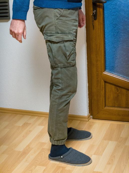 Dolge zelene moške cargo hlače slim fit s stranskimi žepi W36 L34