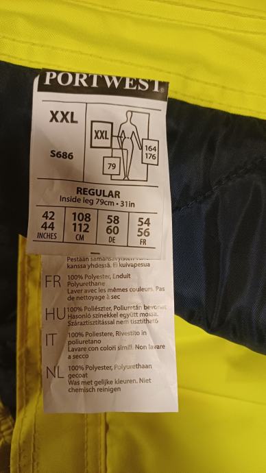 Prodam nove nepremočljive,podložene,visokovidne hlače Portwest S686,številka XXL.