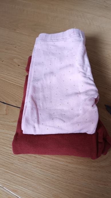 Druge so roza, s pikicami po celotni dolžini, ozek kroj (legice), z elastiko v pasu, znamke Okaidi.