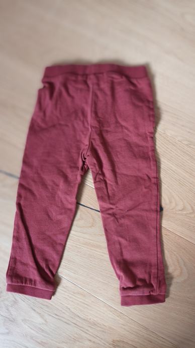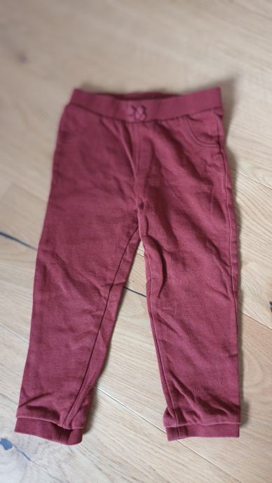 Prve hlače so bordo rdeče barve, z elastiko v pasu in našito pentljico spredaj, znamke C&A.