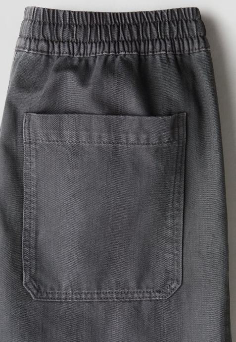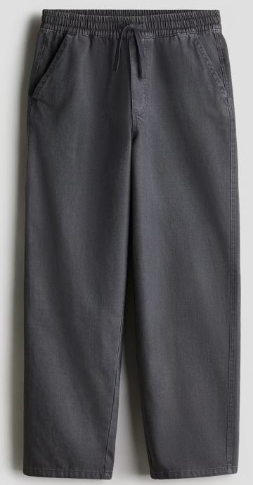 100% bombaž, sive barve, širšega kroja, z elastiko v pasu.